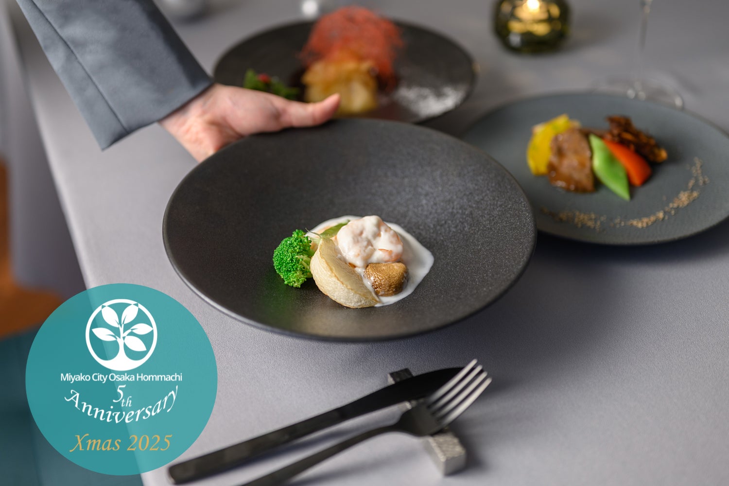 都シティ 大阪本町(所在地:大阪市中央区北久宝寺町1-8-7)は、2025年12月19日(金)から12月25日(木)までの期間、モダンチャイニーズブラッセリー「HALOW」にてクリスマスメニューを提供します。伝統の中国料理を斬新にアレンジしたシェフこだわりの創作中華が、クリスマス期間限定でさらに進化を遂げます。フレンチを思わせるような前菜の演出から、和のエッセンスを取り入れた中華風茶碗蒸しや、蒸籠蒸しブレッドなど創作中華の世界を没入感たっぷりに味わえるコースをお届けします。今年は、ナイフとフォークで味わうモダンチャイニーズで一味違うクリスマスをお楽しみください。また、ディナーの後はゆっくりおくつろぎいただけるクリスマスディナー付き宿泊プランもご用意しております。