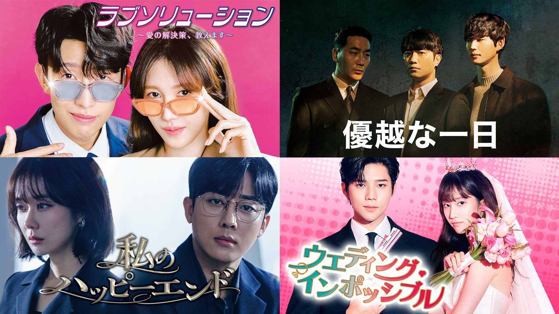 10月以降のゲオ先行レンタルのラインナップを発表!『ラブソリューション ~愛の解決策、教えます~』『優越な一日』『私のハッピーエンド』『ウエディング・インポッシブル』の4作品がDVDで順次登場