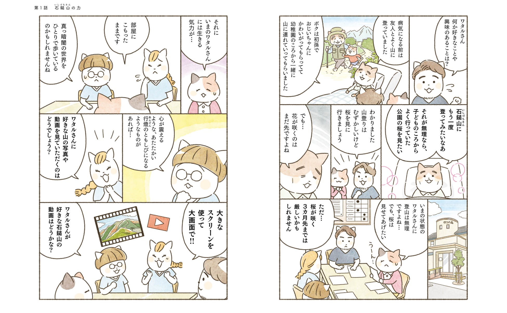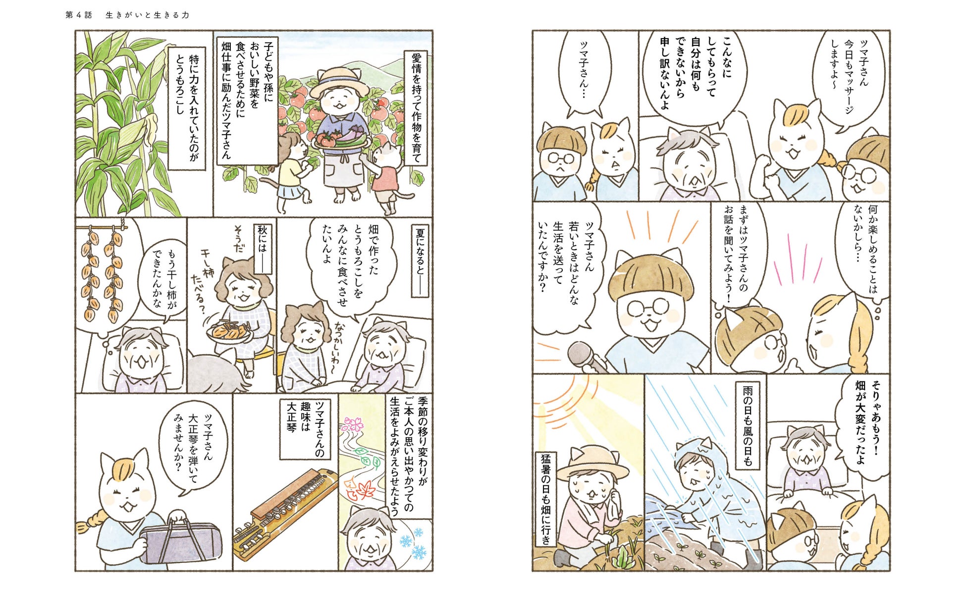 本作は、愛媛の在宅医「たんぽぽ先生」こと永井康徳先生と患者さんの実際のエピソードをねこの物語にしたマンガ「在宅医たんぽぽ先生物語 さいごはおうちで」の続編です。