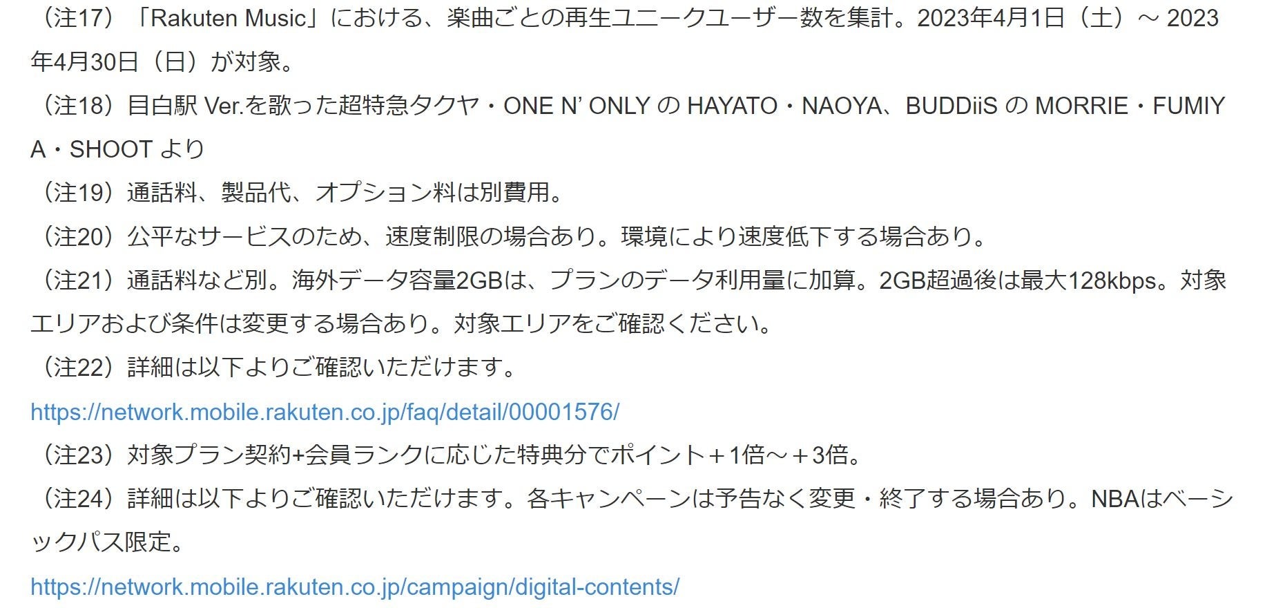 (注24)詳細は以下よりご確認いただけます。各キャンペーンは予告なく変更・終了する場合あり。NBAはベーシックパス限定。https://network.mobile.rakuten.co.jp/campaign/digital-contents/