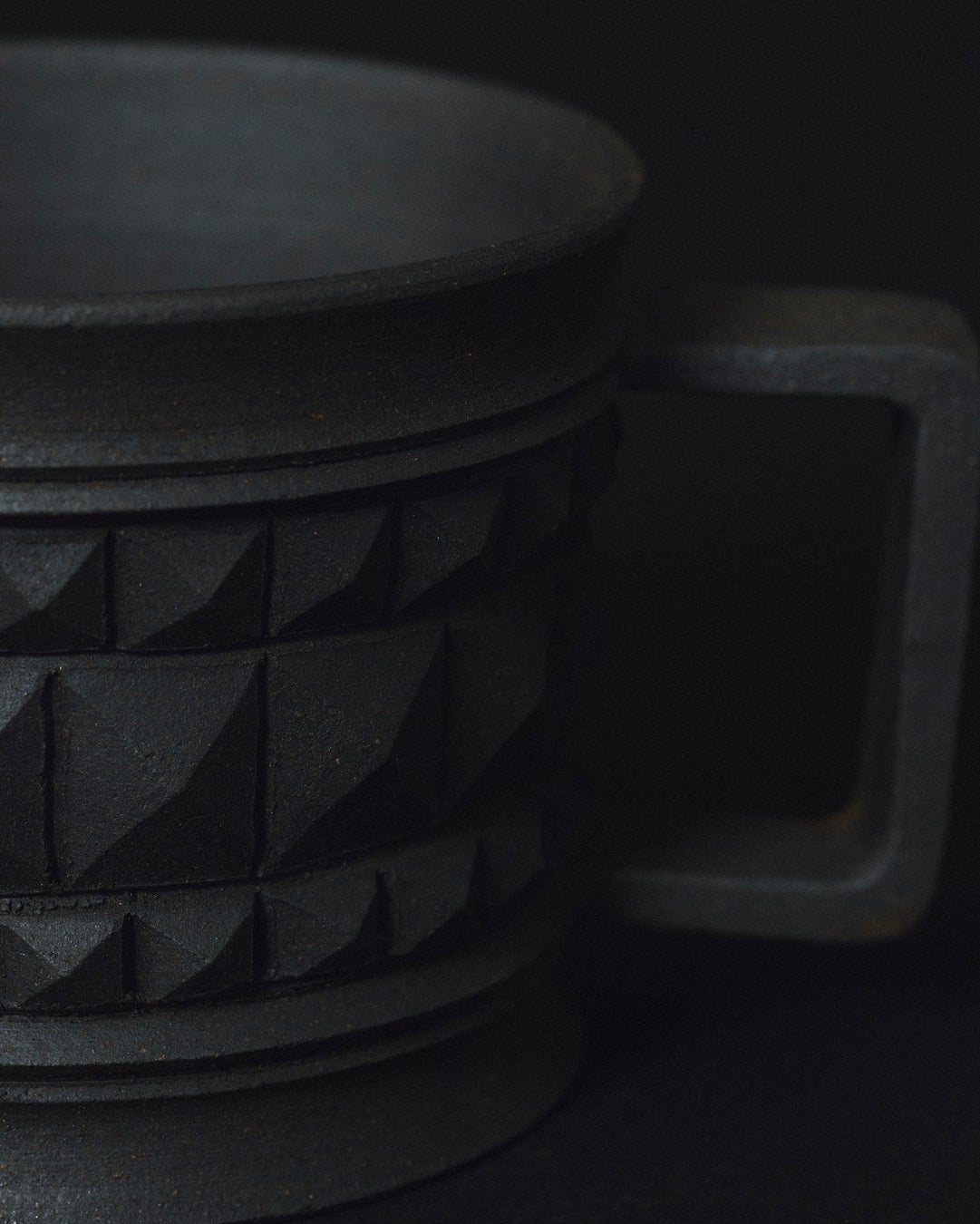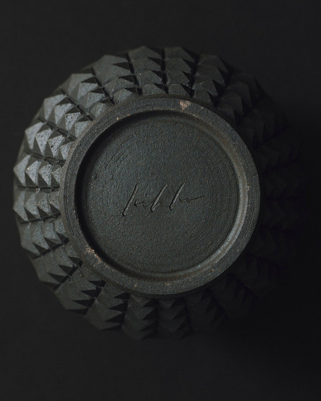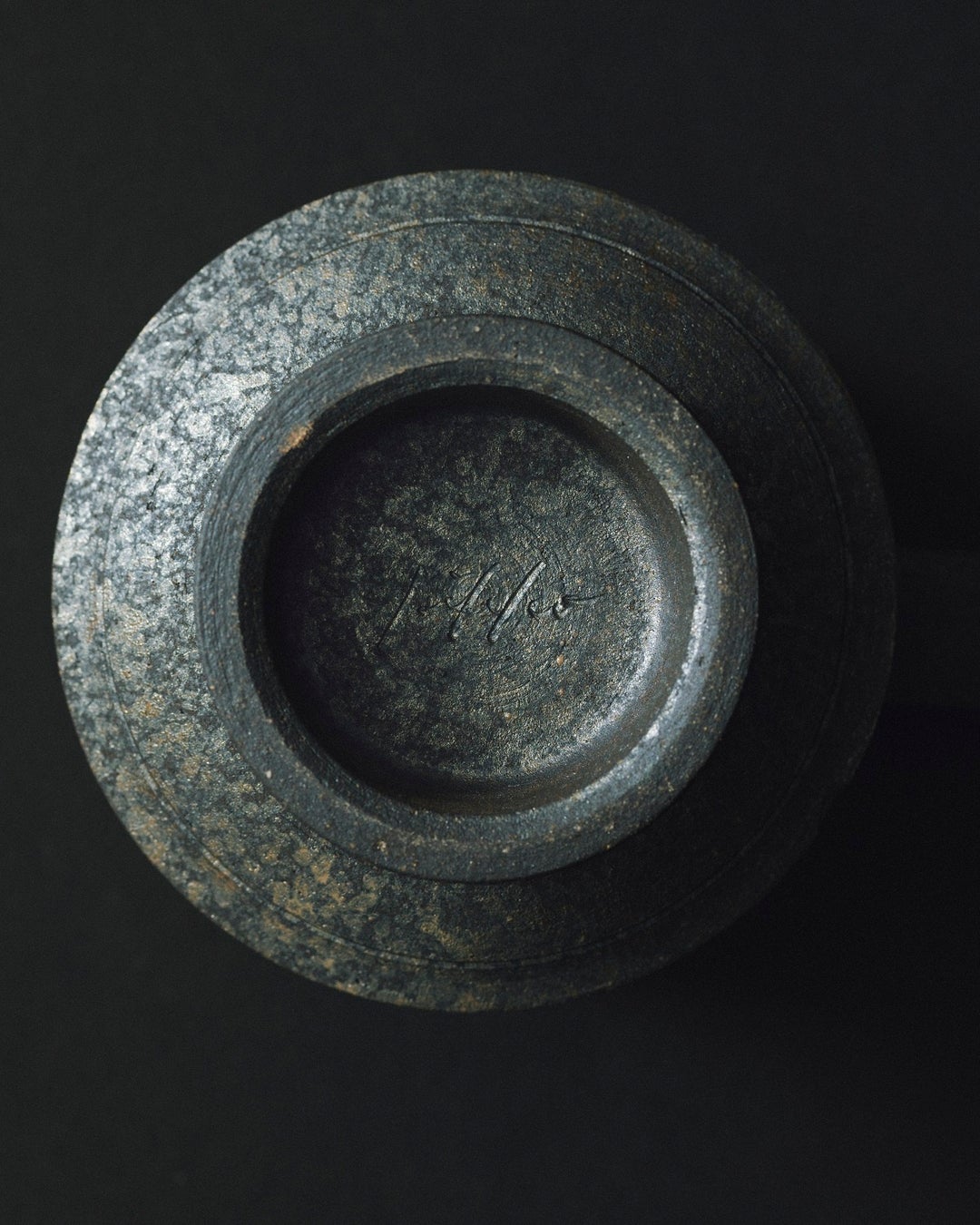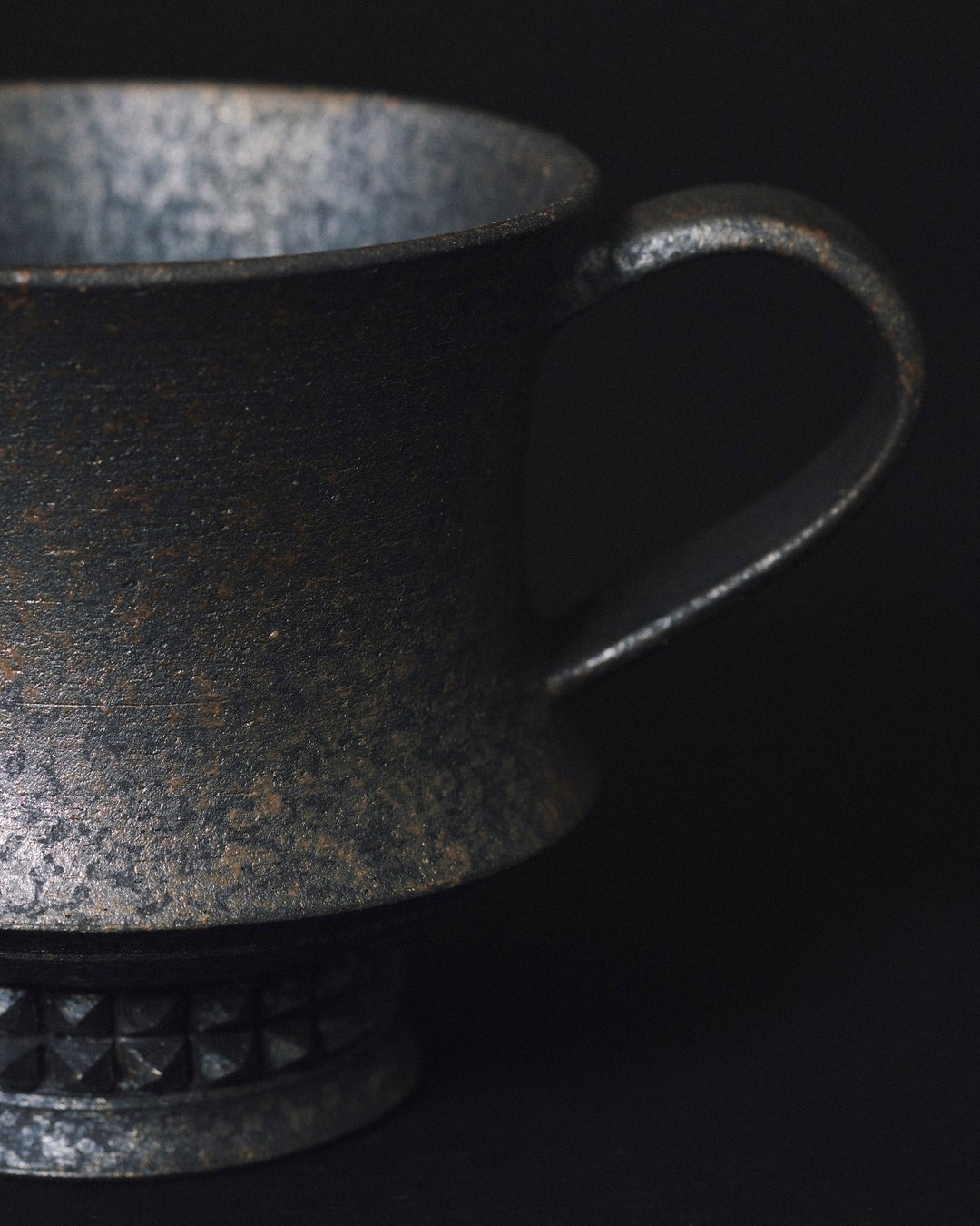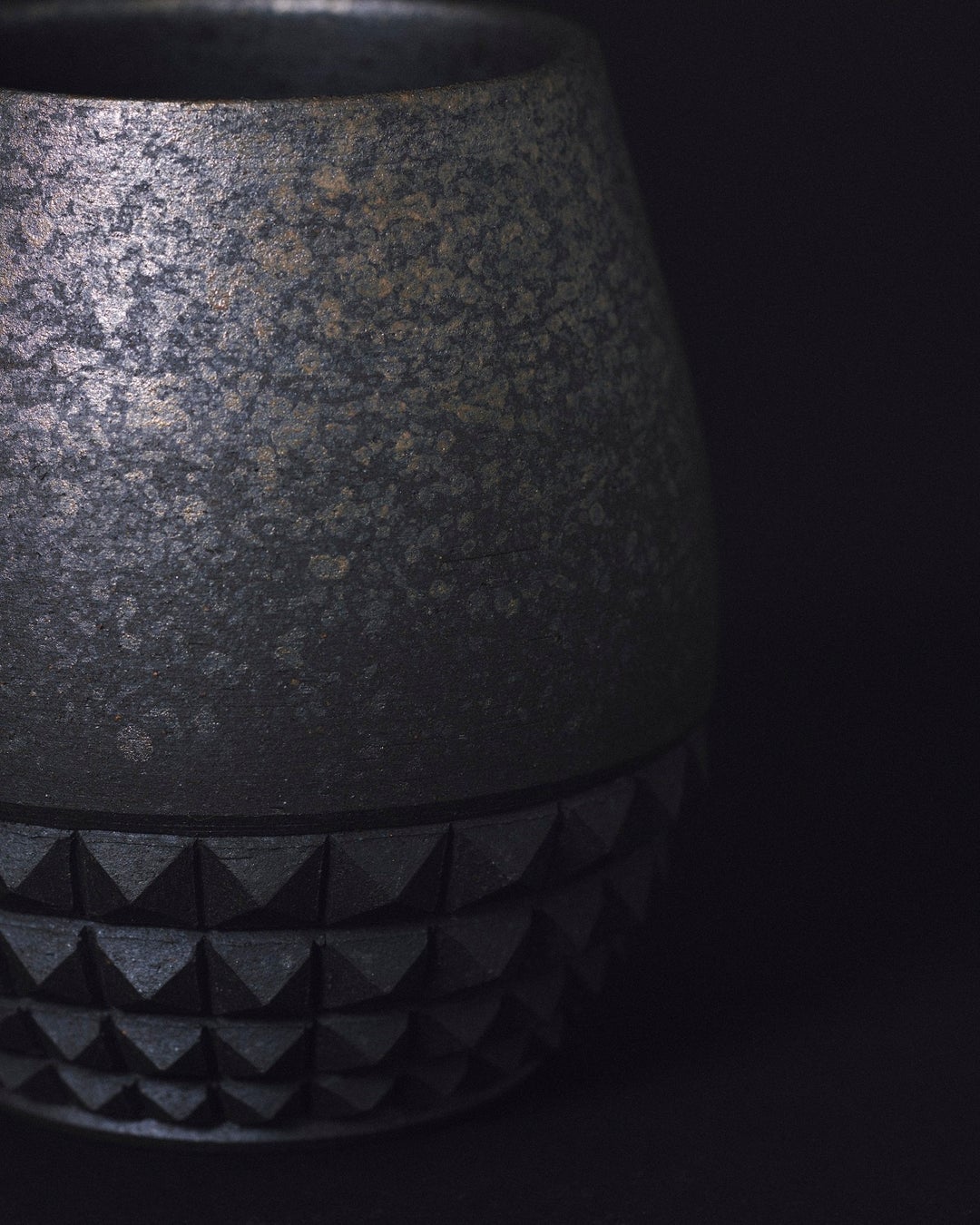 kikko焼締に霧状の銀彩が入っている スタッズが引っかかりとなって持ちやすい 過去イベント出品時も好評いただいた。