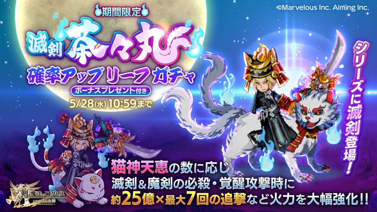 株式会社マーベラス(代表取締役社長:照井 慎一/所在地:東京都品川区)は、スマートフォン向け本格オンラインRPG『剣と魔法のログレス いにしえの女神』において、2025/5/7(水)に「シークレットファンタジア~思い出の庭と忘れられた人形~」のクエスト追加、および新武器を追加した「滅剣茶々丸確率アップリーフガチャ」の販売を含むアップデートを行ったことをお知らせいたします。