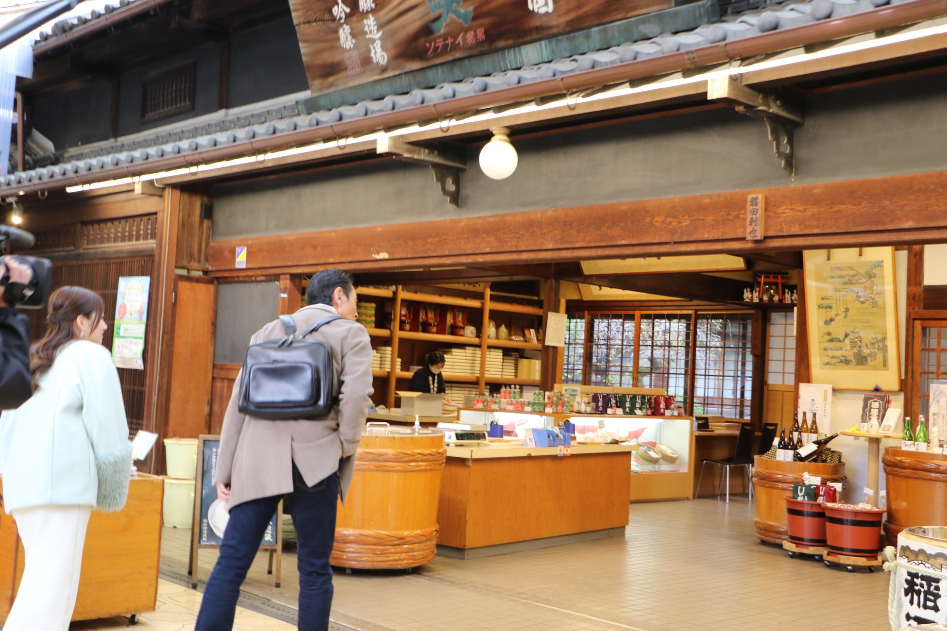 早速お酒を求めて、桜井三輪に現存する唯一の酒蔵【今西酒造(参道店)】へ。新酒の時期限定でしか味わいえない『三諸杉』の≪生原酒≫を特別に試飲させていただけることに!