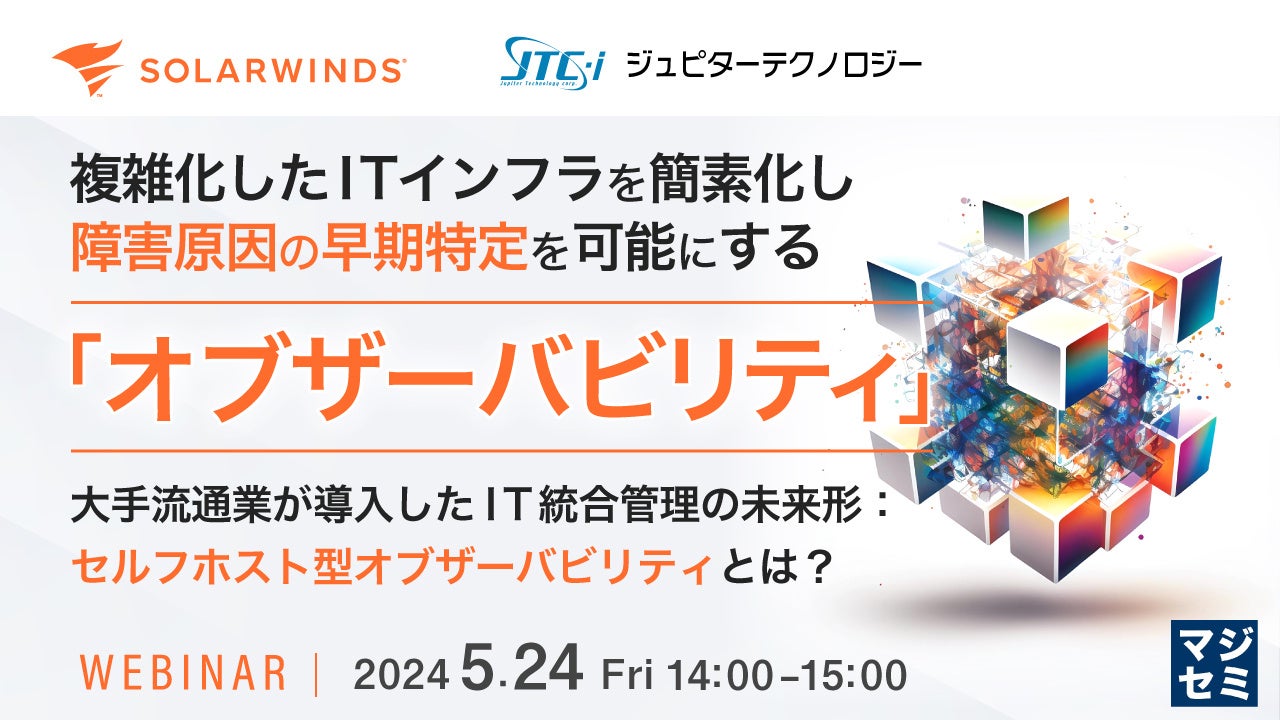 では、オブザーバビリティを実現するための具体的な方策とは何でしょうか。本セミナーでは、IT管理のリーディングカンパニーであるSolarWinds社が提供する、次世代IT管理を実現するセルフホスト型のIT統合管理ツール「SolarWinds Hybrid Cloud Observability」を取り上げます。Hybrid Cloud Observabilityは、フルスタックな可観測性を実現するために必要な機能を一つのパッケージに集約しています。ネットワーク、システム、アプリケーション、データベースなど、ITインフラのあらゆるレイヤーを一元的に監視・可視化し、パフォーマンスと依存関係をリアルタイムに把握することができます。大手流通業でHybrid Cloud Observabilityを導入した事例もご紹介します。属人化されたサイロ化した運用体制から脱却したいとお考えの方は、ぜひご参加ください。