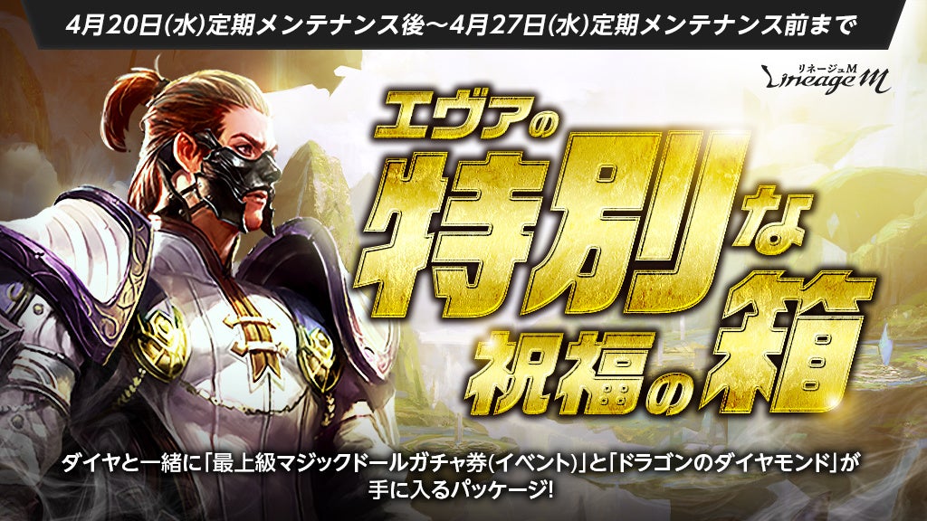 PCオンラインRPG「リネージュ」のモバイル版タイトル『Lineage M(以下、リネージュM)』のサービス、運営をしているエヌ・シー・ジャパン株式会社(東京都港区、代表取締役:金 澤憲(キム テクホン) 以下、エヌシージャパン)は、2022年4月20日に連載型イベント「次元の亀裂」シリーズ第4弾「風神降臨」の公開に加え、「輝く最上級変身ガチャパッケージ」、「ガーディアンのバッジ箱」期間限定製作4週目の登場、「エヴァの特別な祝福の箱」が登場したことをお知らせします。