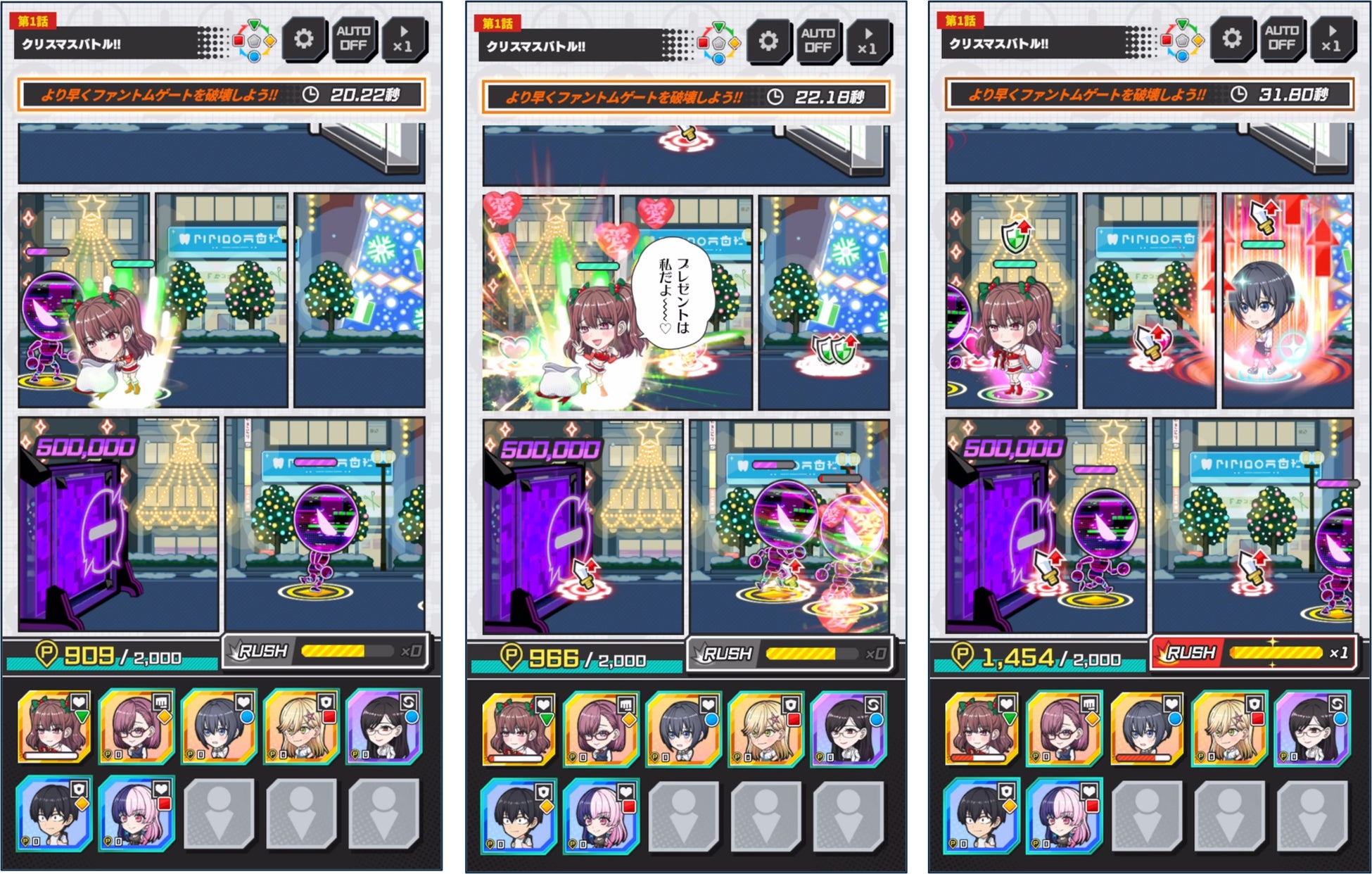 ゲームジャンルは漫画コマの中で前線を押し上げていく、今までにない「漫画コマ型タワーオフェンスゲーム」となっており、ゲームを普段遊ばない方も直感的に楽しむことができます。
