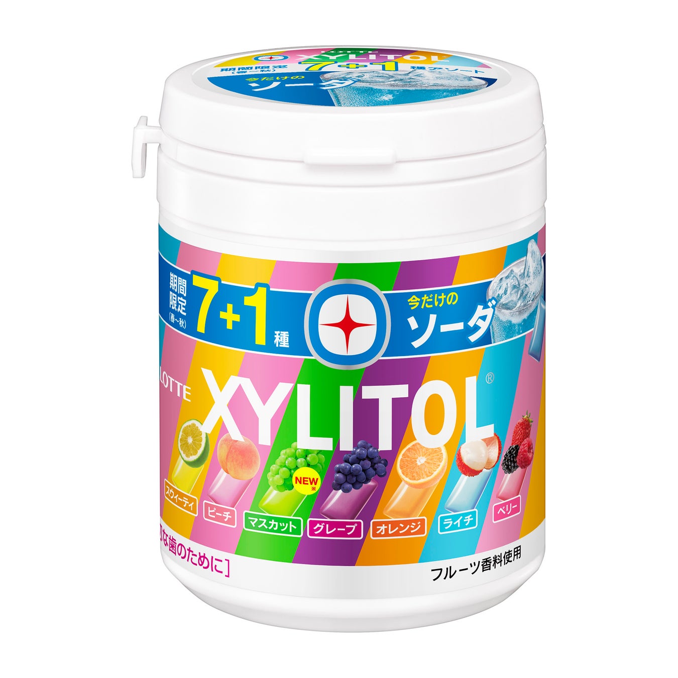 グレープ・ピーチ・マスカット・スウィーティ・ベリー・オレンジ・ライチの7種類のフレーバーに、期間限定で「ソーダ」味が加わって8種類のフレーバーが楽しめます。また「マスカット」味はガムの外側の糖衣部にビタミンCを配合した品質にリニューアル。それぞれの香りとキシリトールらしい爽やかな味わいをお楽しみいただけます。