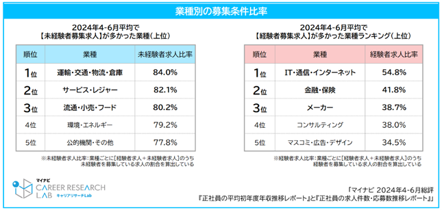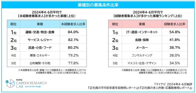 ~2024年4-6月平均 業種別の経験者・未経験者求人比率~