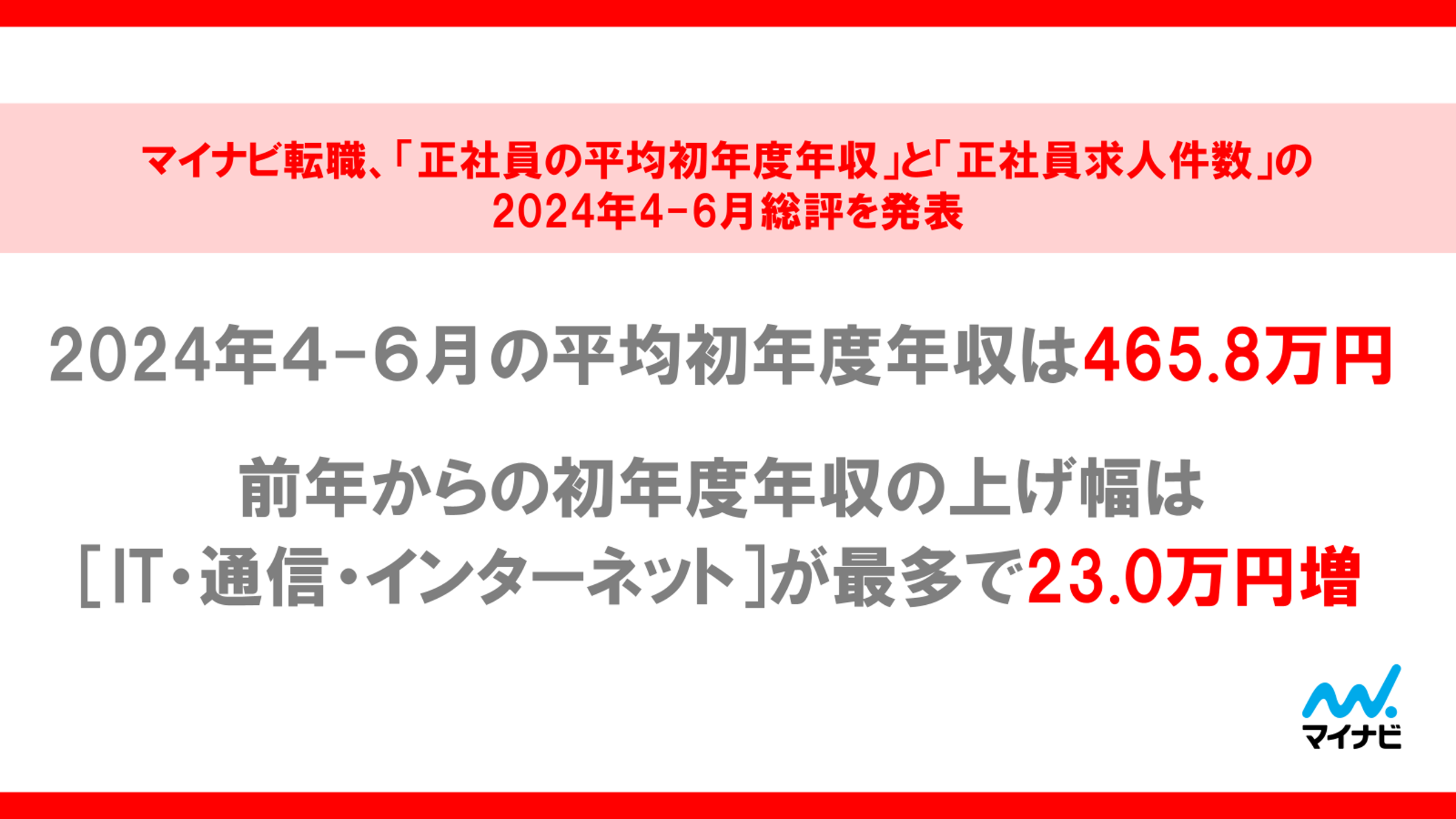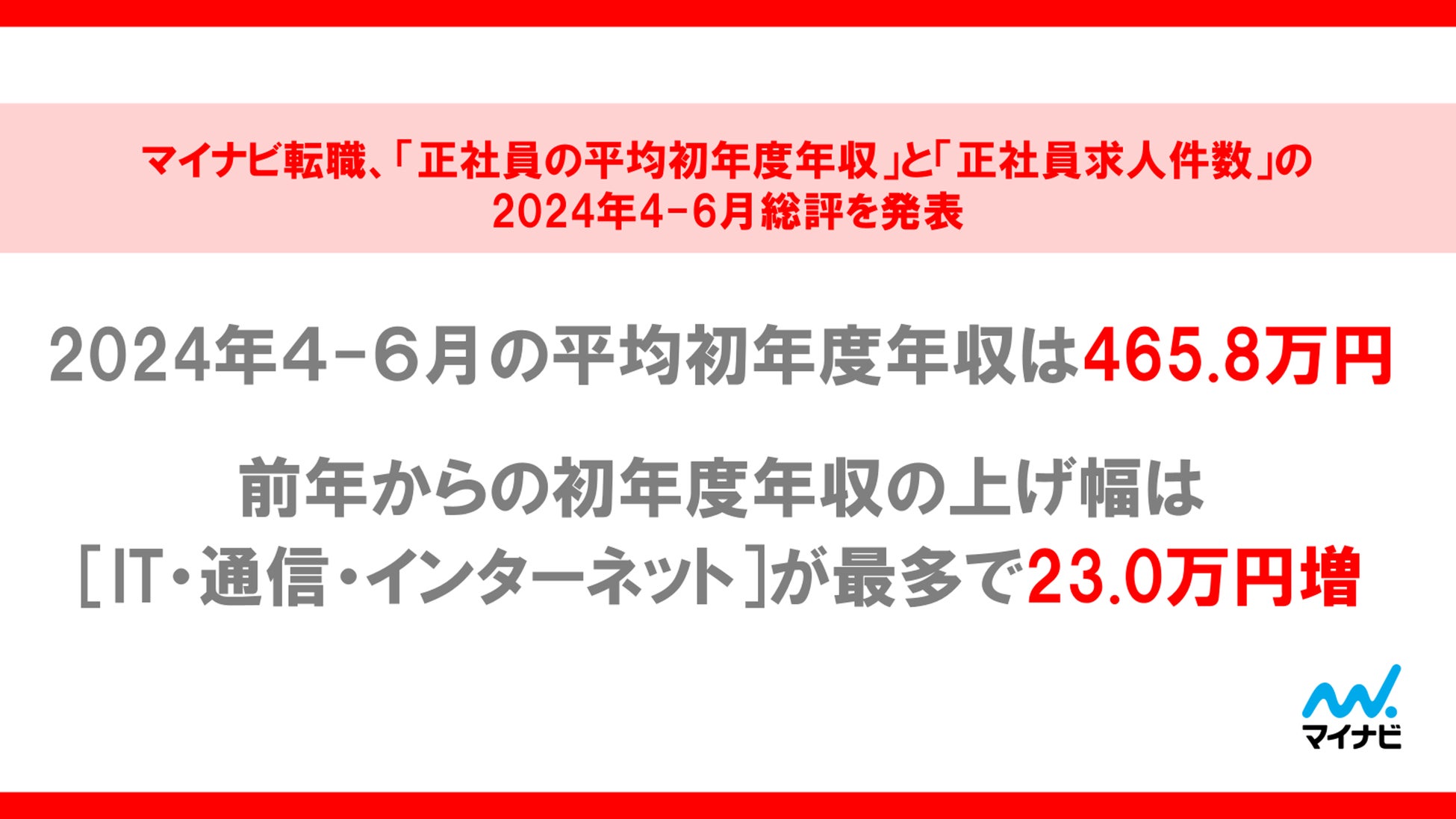 マイナビ転職、「正社員の平均初年度年収」と「正社員求人件数」の2024年4-6月総評を発表