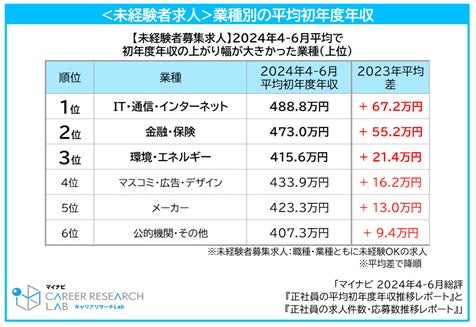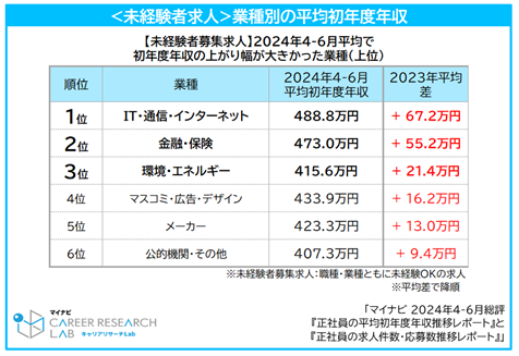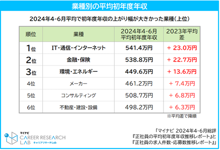 ~2024年4-6月平均業種別の初年度年収~