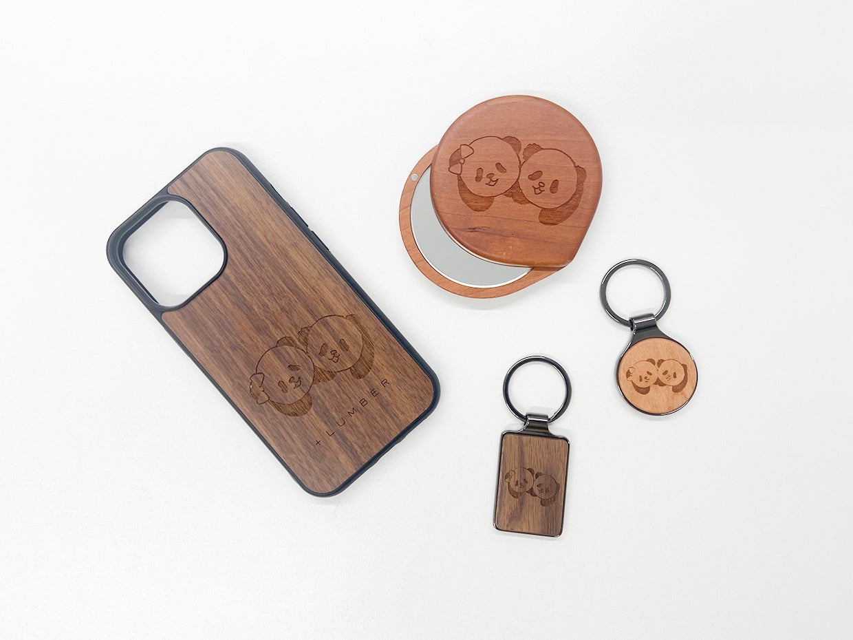 「作り手とお客様をつなぐお店」をコンセプトに展開する、木製デザイン雑貨ハコアの直営店。キーリング、コンパクトミラー、iphoneケースへイラストを刻印いたします。