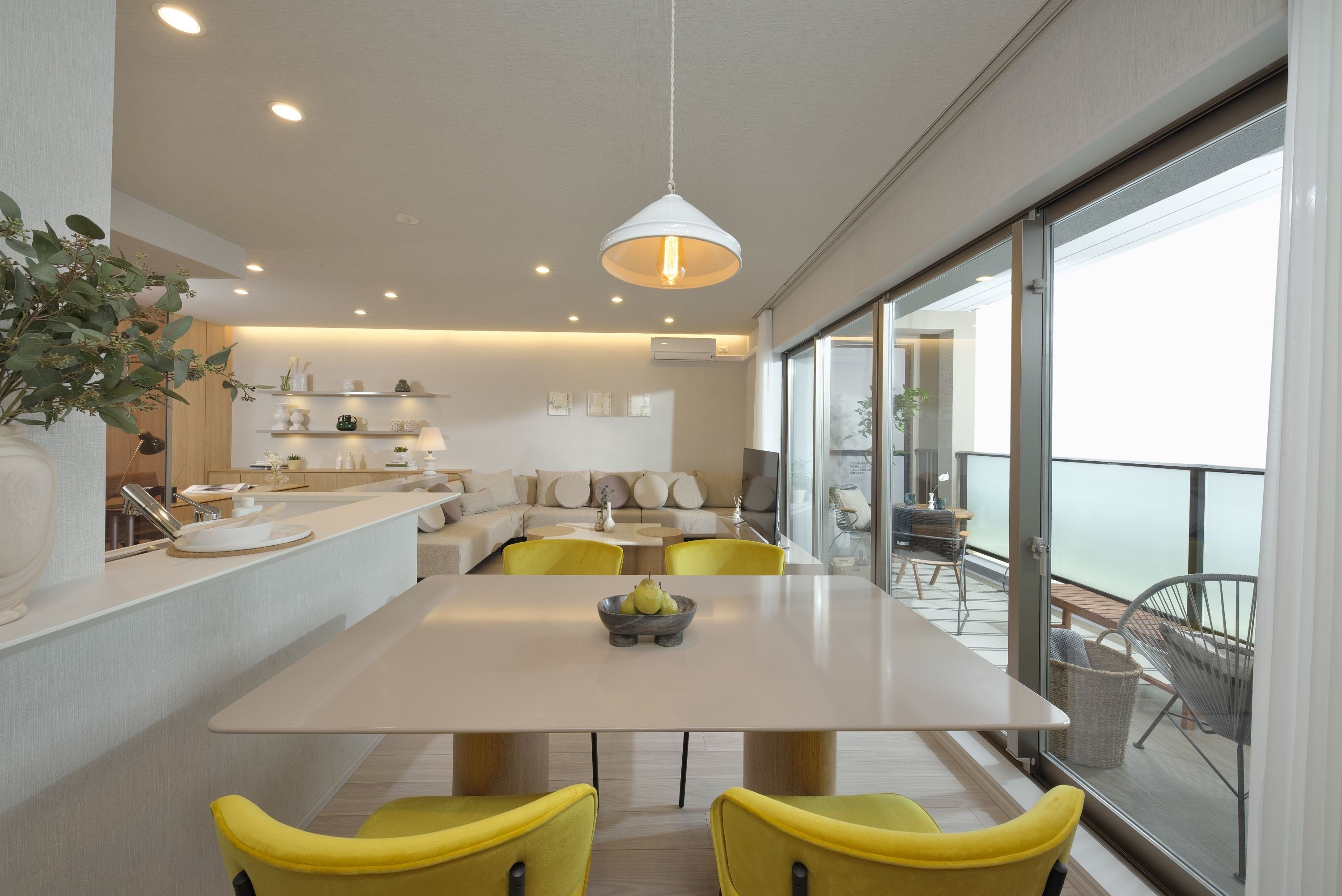 「Nostalgic Rich」というコンセプトのもと、マッシュグループがモデルルームをコーディネート。人々が自分らしく、楽しく、そして笑顔の数を増やす「ウェルネスデザイン」というマッシュグループのスローガンを大切に、 どことなく記憶がよみがえるような懐かしさと、落ち着きのある独特な高級感を醸成します。
