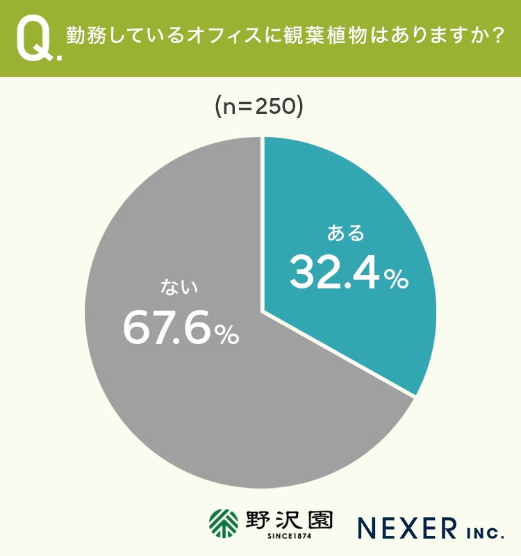32.4%の方が「勤務先に観葉植物がある」と回答しました。