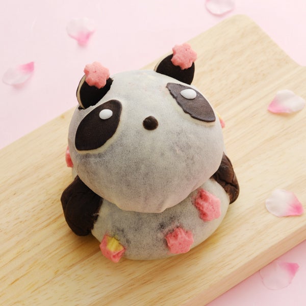 チョコレート風味の菓子パン生地でチョコクリームを包み、白と黒の生地を組み合わせて立体的に表現したパンダパンです。
