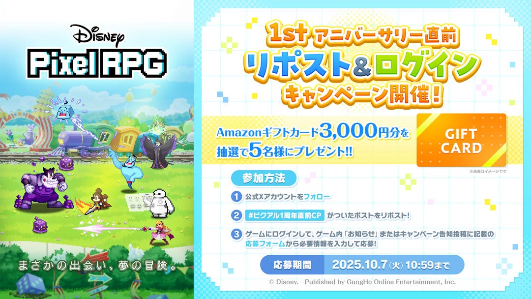 「iOS」および「Android™」端末向けに好評配信中のスマートフォン向けRPG『ディズニー ピクセルRPG』では、2025年9月24日(水)より「1st アニバーサリー直前キャンペーン」を実施いたします。