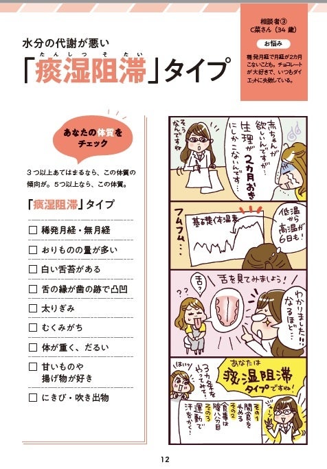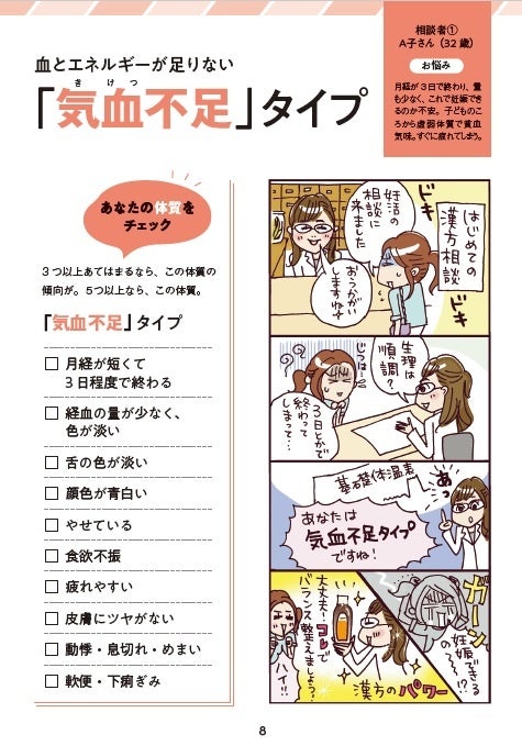 月経の状態をととのえることは、妊活をするうえでとても重要なこと。本書では、月経がととのわない3つの体質をピックアップ。体質別に特徴、養生のポイント、おすすめの食材などのアドバイスを掲載。
