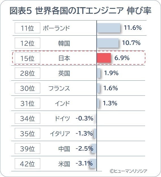 3.日本は前年6.9%増と躍進するも、人材供給力の弱さが浮き彫りに