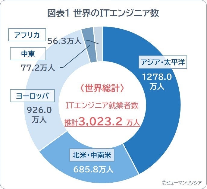 •世界のITエンジニア数は、前年比約2.2%増の3,023.2万人に