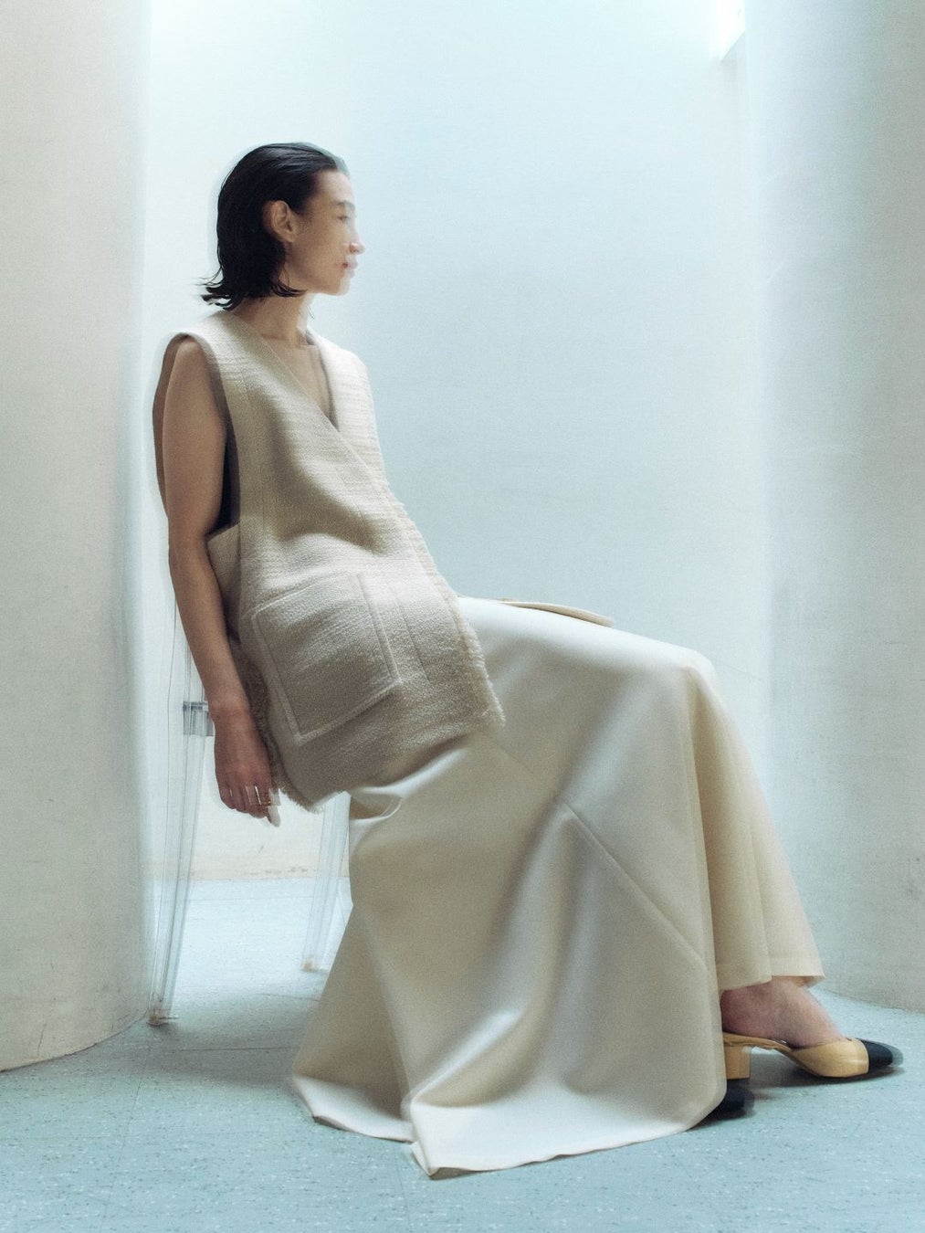 シルクやツィード素材で、繊細かつしなやかな女性像を表現いたしました。