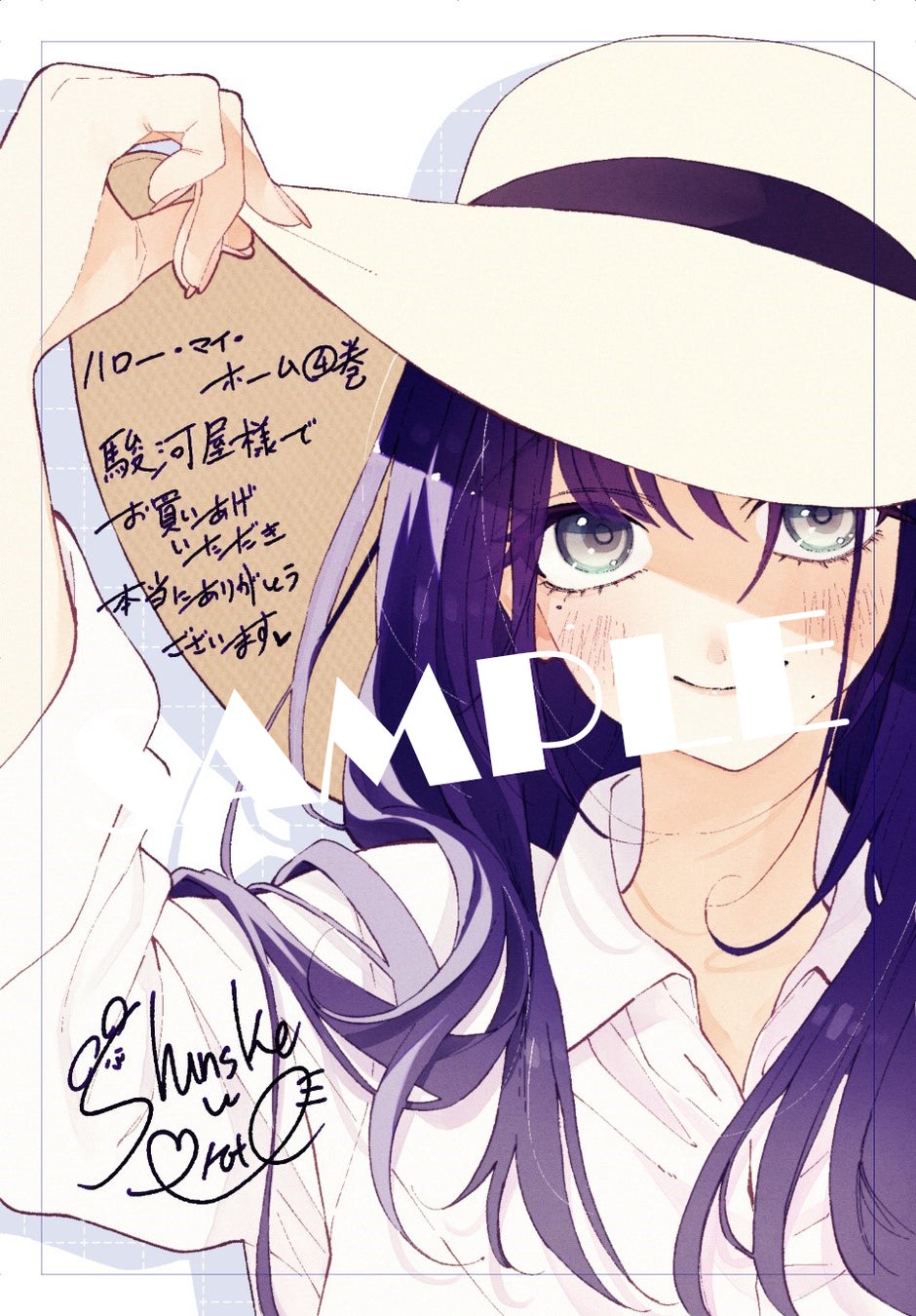 最新刊発売を記念し、駿河屋様にてコミックELMO『ハロー・マイ・ホーム 4』をご購入のお客様に、限定ブロマイドカードを1枚プレゼントいたします。