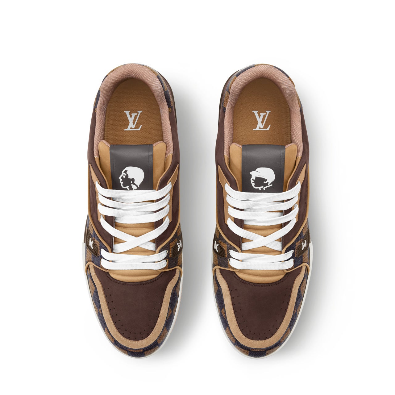熱烈な支持を受けるアイテムを、ヌバックレザーとダミエ·キャンバスで解釈したエクスクルーシブな「LV トレイナー スニーカー」。2025秋冬メンズ·ファッションショーでのファレル·ウィリアムスとNIGO®のコラボレーションを讃えるこのモデルは、シュータンに施された2人の顔のイラストが特徴です。サイドに添えた手描き風の「Louis Vuitton」シグネチャーや、テクニカルラバーアウトソールにあしらったモノグラム·フラワーなどのディテールも。