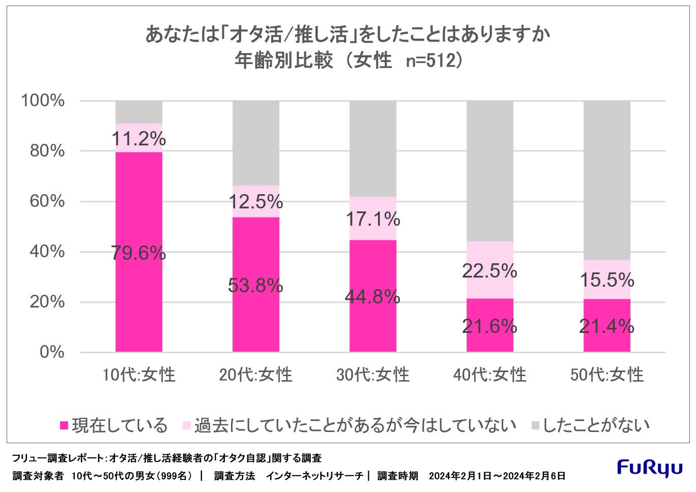 ■10代~50代男女の半数が「オタ活/推し活」の経験者。10代女性は約80%が現在進行形で活動中!