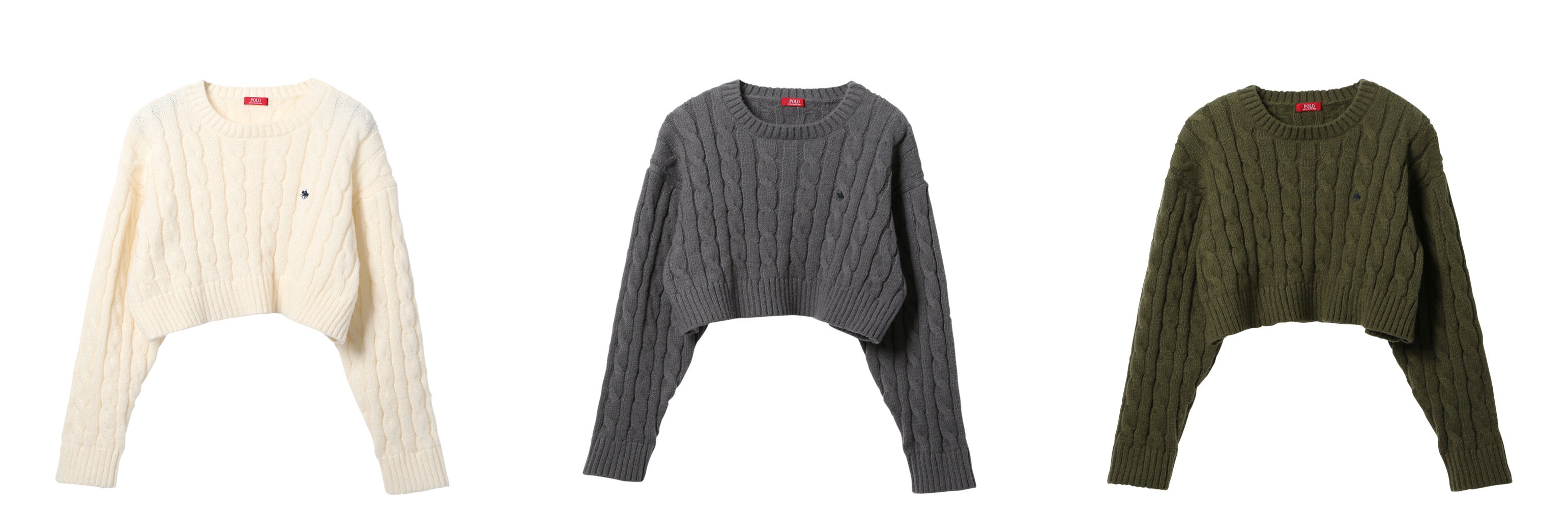 大きめのケーブルが可愛いPOLO BCSの定番人気のケーブルニット。