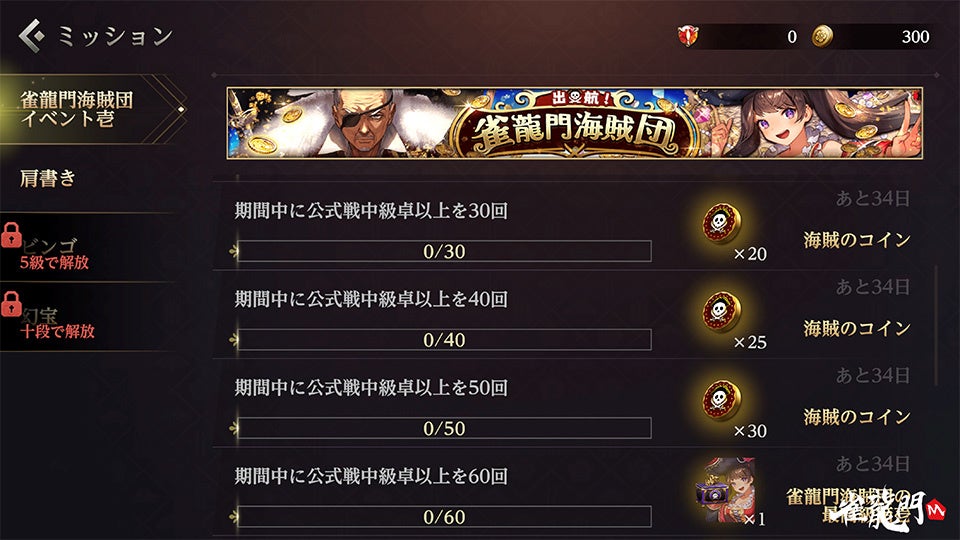『雀龍門M』イベントに参加して限定アバターアイテムを手に入れよう!イベント「出航!雀龍門海賊団」が本日より開催!