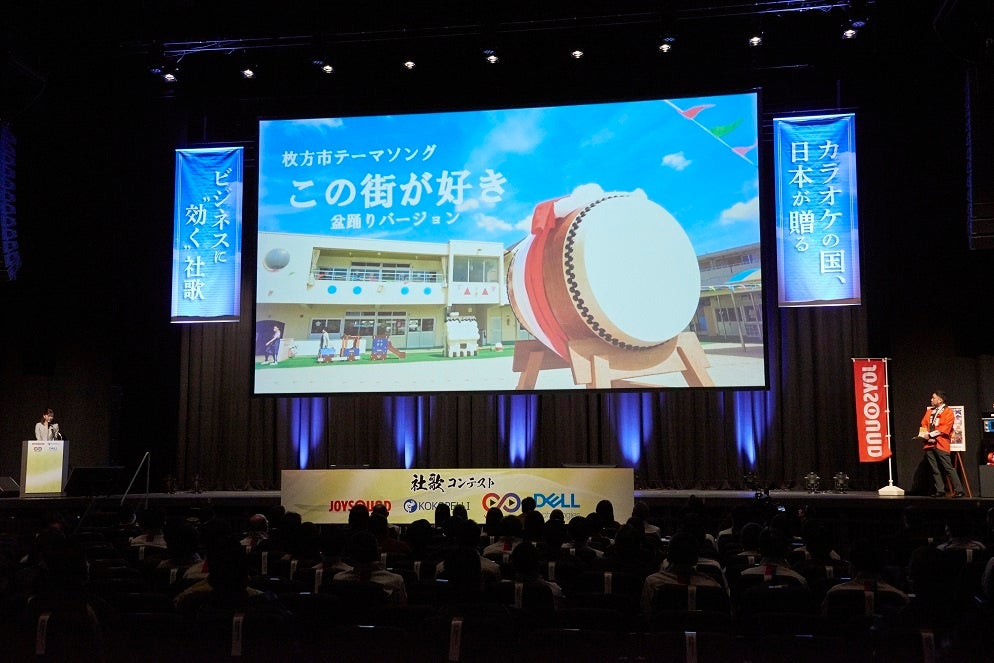 株式会社エクシング(本社:名古屋市瑞穂区、代表取締役社長:水谷 靖)が特別協力を行っている日本経済新聞社主催の「NIKKEI全国社歌コンテスト2023」の決勝戦および表彰式が2月3日(金)に開催され、全国125社の中から、地方自治体として初めて、“枚方市テーマソング「この街が好き」盆踊りバージョン ~みんなの笑顔に会いに行く~”が、全国の頂点に輝きました。当社では、本楽曲、および決勝進出企業の社歌をオリジナル映像とともに、順次JOYSOUNDでカラオケ配信する予定です。