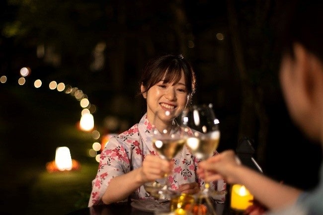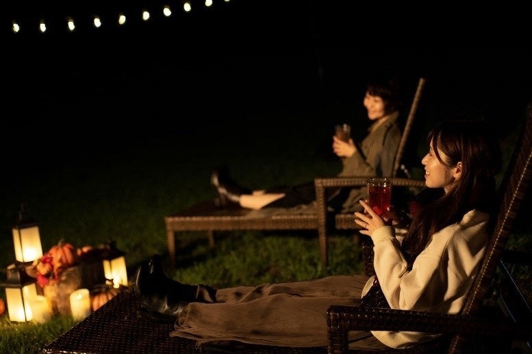 深呼吸をしながら森の香りや湖畔の風を感じ、目を閉じて、鳥のさえずりや虫の音に耳を傾けるなど、自然をまとうような体験は、心身に安らぎを与えてくれます。焚き火の炎やランタンのやさしい灯りを眺めながらゆったりとした時間を過ごす「秋の夜長のハロウィーン」を体感いただきます。駒ヶ岳山頂の満点の星が降り注ぐ幻想的な景色もおすすめです。また、それぞれのテラスではハロウィーン限定の特別メニューやカクテルなどもお楽しみいただけます。