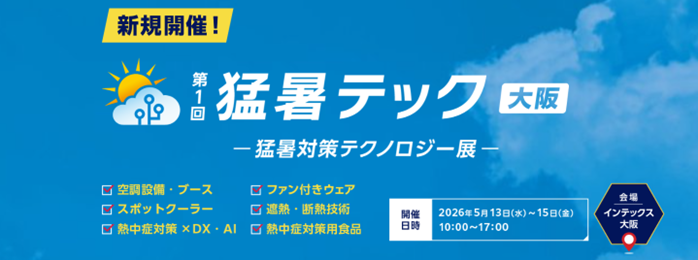 RX Japan合同会社(本社:東京都中央区、代表執行役員社長:田中岳志)は、2026年5月13日(水) - 15日(金)の期間、第1回 猛暑テック[大阪]猛暑対策テクノロジー展を初開催します。