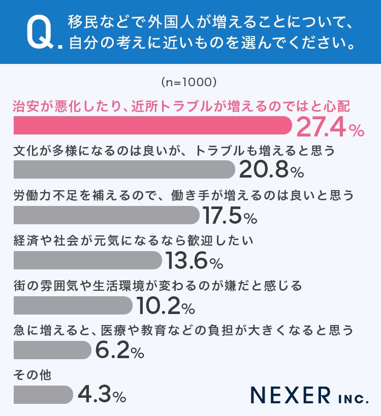 文化の多様化を肯定しながらも「マナーの違い」「言葉の壁」「報道で見る犯罪」など、生活感覚としての不安が根強く残っている様子が伝わる結果となりました。