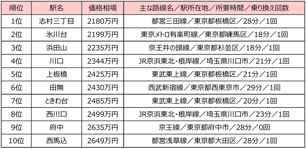 1位「新宿駅」周辺の価格相場より2500万円安い「志村三丁目駅」