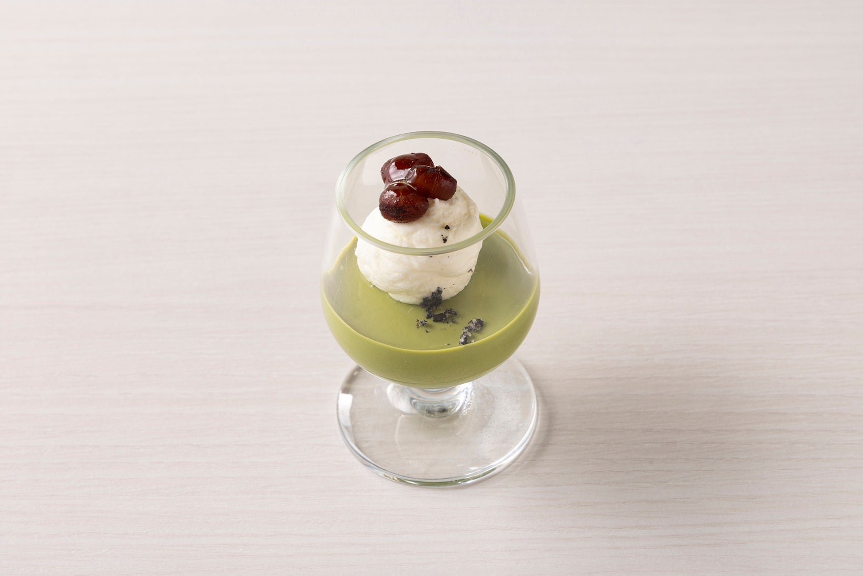 スイーツは、「抹茶の調べ」、「初夏の果実」、「和の甘味」の3つのテーマで構成し、全9種を一皿に美しく盛り合わせました。和の色彩と繊細な味わいをご堪能いただけます。