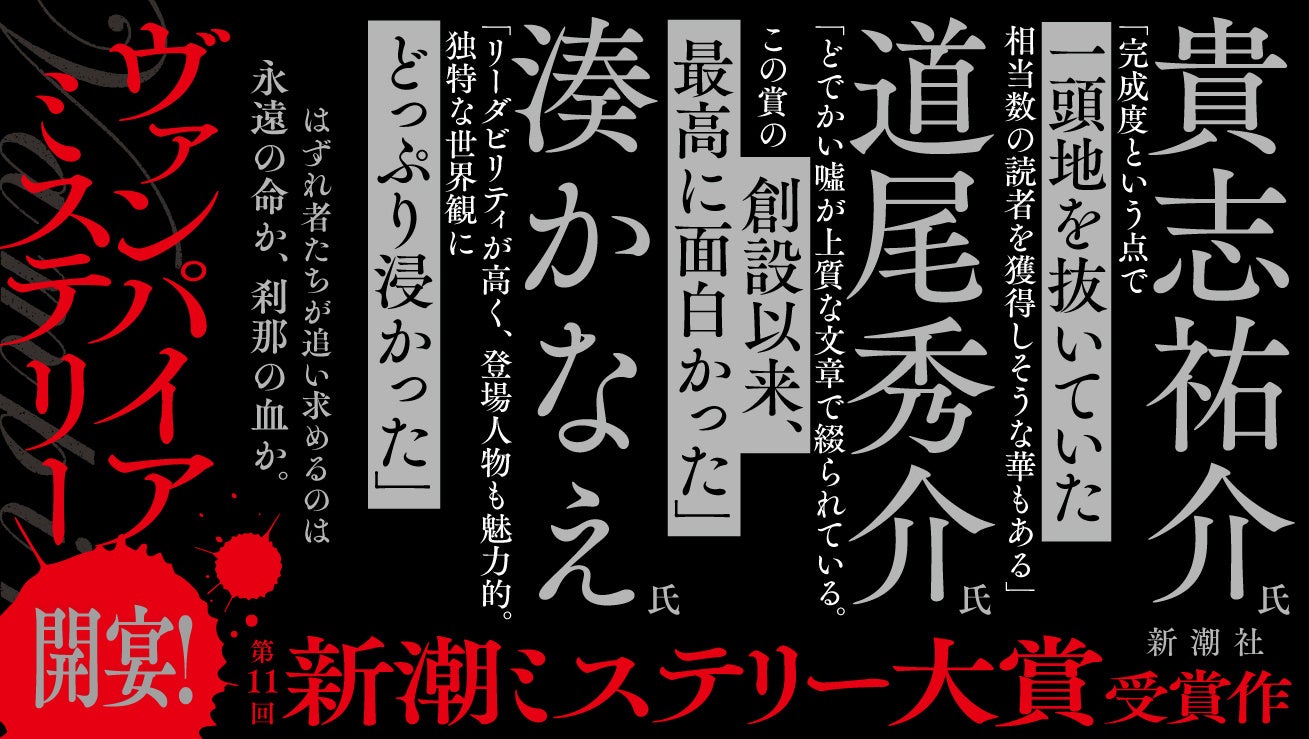 新潮ミステリー大賞3度目の挑戦となったのが、本作『リストランテ・ヴァンピーリ』。大戦を経験した、とある国家を舞台に人肉料理を供するレストランで、マフィアに殺し屋、そしてヴァンパイアが跋扈する――。外連味溢れる設定と流麗な文章に、魅力的なキャラクター造形が調和した、才気溢れる野心作だ。