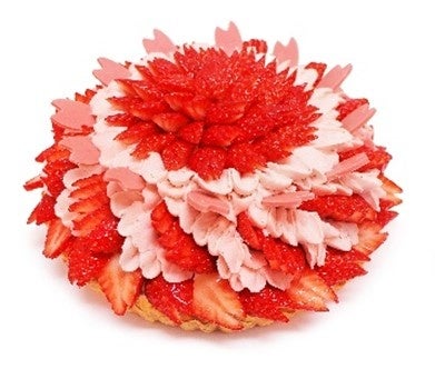 いちごを桜の花びらに見立ててカットし華やかに咲き誇る桜をイメージ。