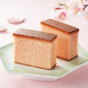 桜花ペーストを入れてふんわり焼きあげたカステラ。