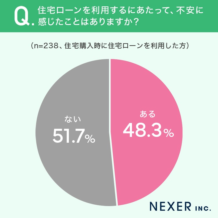 一方で住宅ローンを利用した方の約半数が、利用するにあたって不安を感じたと回答しています。