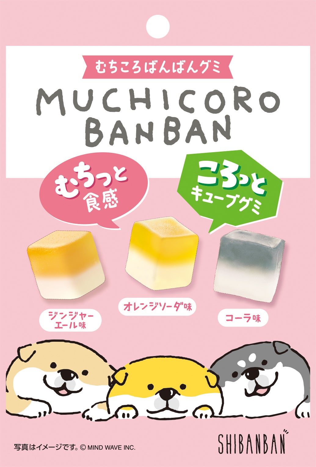 【内容】むちころばんばんをイメージしたむちっと食感のころっとしたキューブグミです。ジンジャーエール味、オレンジソーダ味、コーラ味の3種の味わいが楽しめます。色もむちころばんばんの配色を表現した2色を組み合わせています。オリジナルパッケージ(全2種)