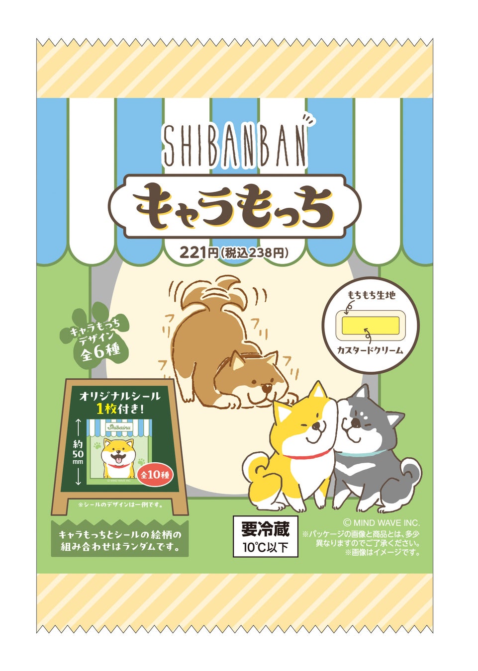 【内容】しばんばんのかわいいイラストが描かれたもちもちの生地にカスタードクリームを入れました。本体に描かれたイラストは全6種、オリジナルシール(全10種)1枚付きです。