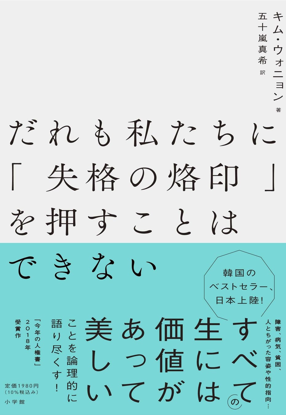そしてこの度小学館は、障害当事者による障害をテーマにした書籍『だれも私たちに「失格の烙印」を押すことはできない』(著:キム・ウォニョン 訳:五十嵐真希)を通常の書籍のほか「電子書籍(リフロー型)」「オーディオブック版」「テキストデータ版」(※1)、また、日本点字図書館(※2)の協力を得て「テキストDAISY版」「音声DAISY版」「点字版」の7つの形態で刊行することを決定。本書は2018年に韓国で発行、発売から4年たった今でも多くの人に読まれているベストセラーを翻訳したものとなります。