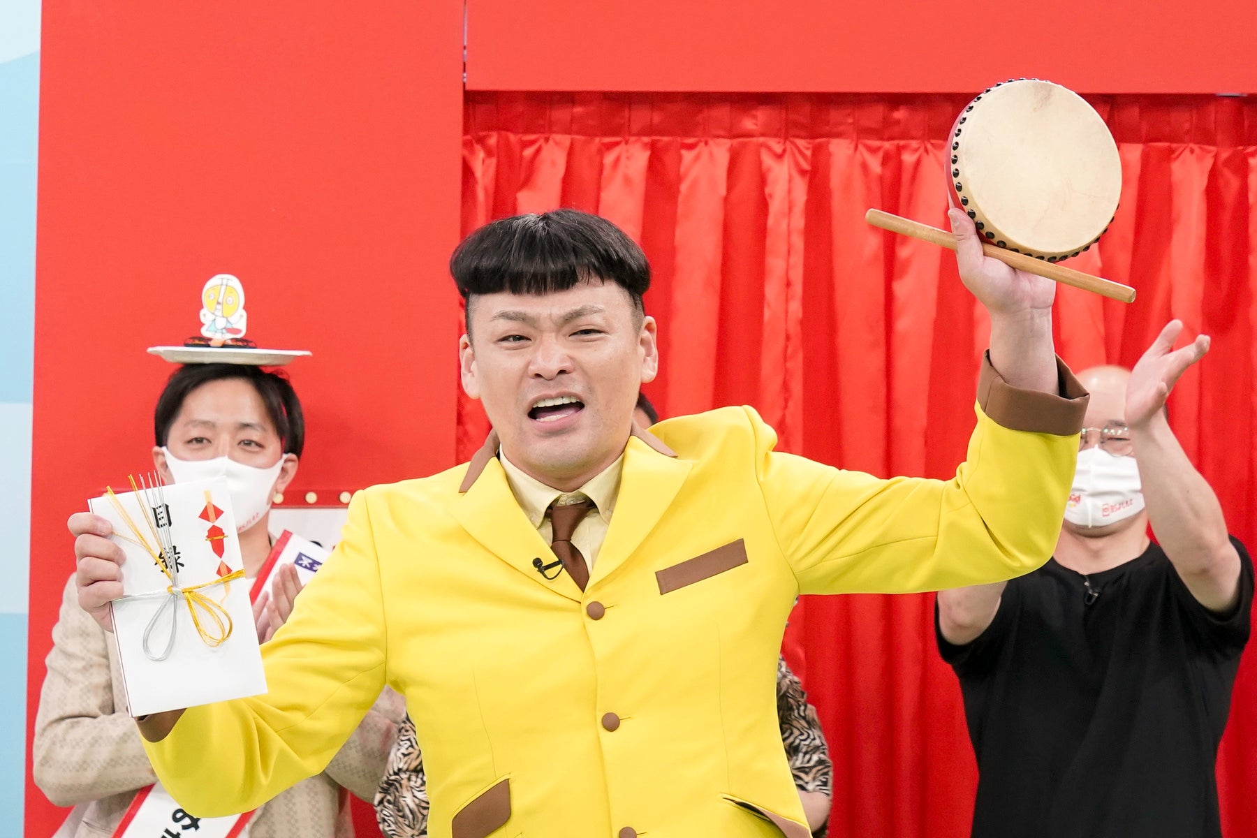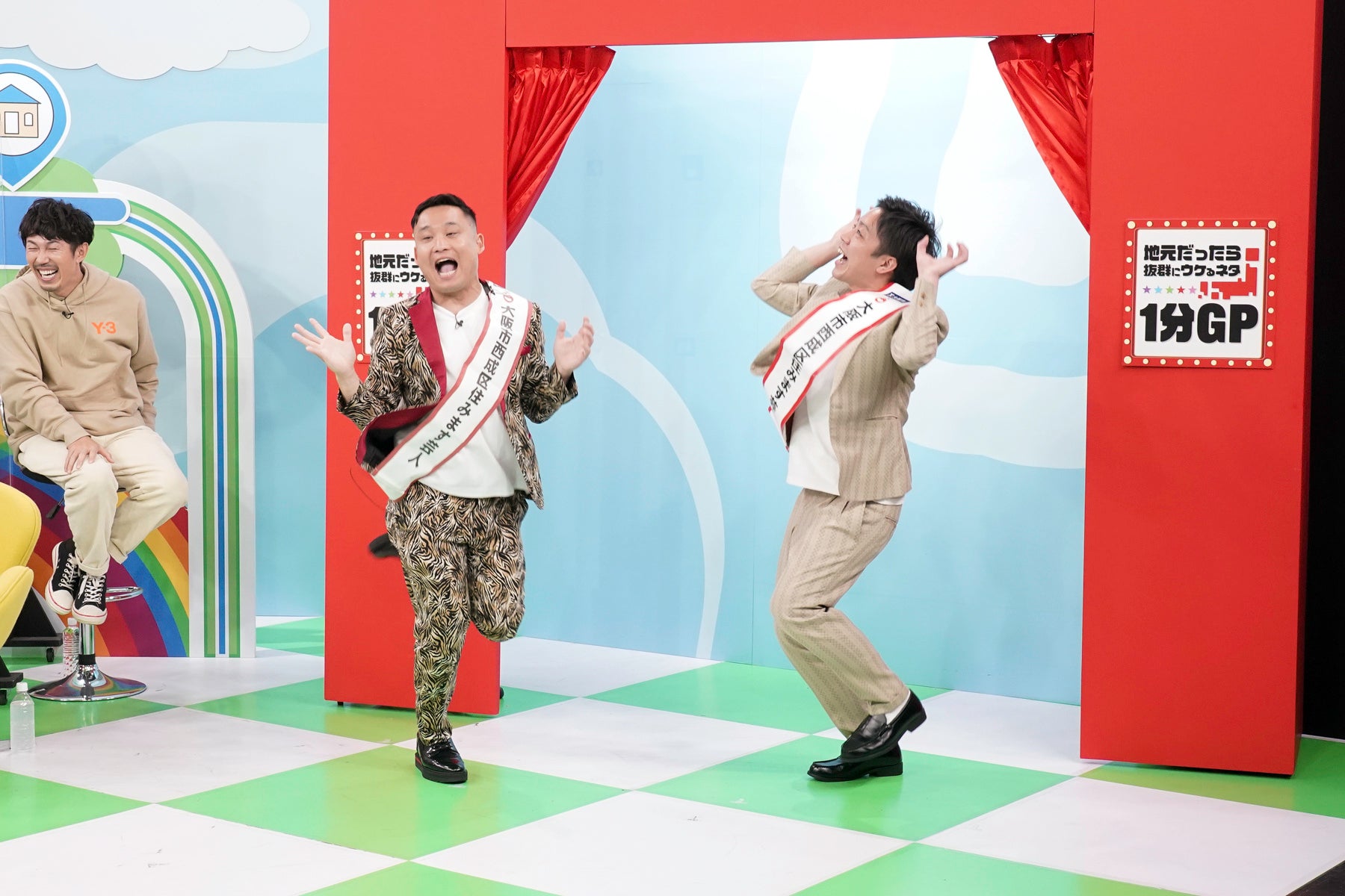 トータルテンボス・大村、麒麟・田村裕、ヨネダ2000(愛、誠)と『M-1グランプリ』ファイナリストの3組から選ばれたらいおんうどんは、「西成」をうまく取り入れたリズムネタ「ガオパオゲーム」&オリジナルソング『ええ街、西成』を絡めたネタを披露。スタジオは爆笑となります。