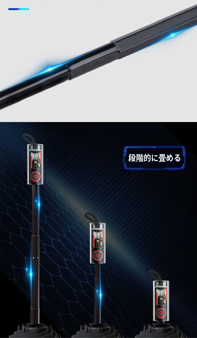 「GeeBrella X1」は、シャフトを段階的に押し込むことができるため、