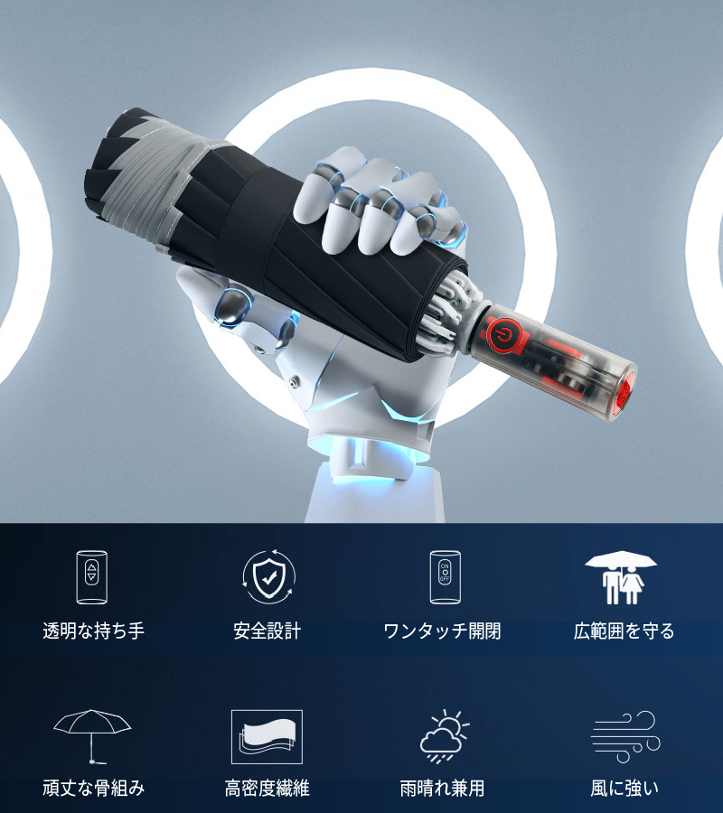 「GeeBrella X1」は、特徴の一つである透明な持ち手の部分が、