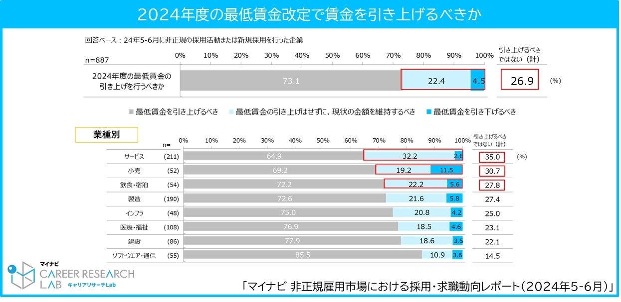 2024年度最低賃金改定に対し、4社に1社が「引き上げるべきではない」と回答