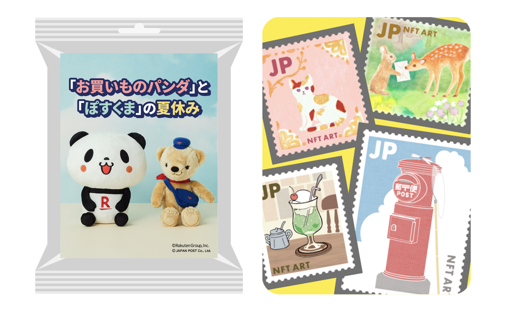 - 楽天の公式キャラクター「お買いものパンダ」と日本郵便のオリジナルキャラクター「ぽすくま」がコラボした、夏休みをテーマにした限定NFT4種の無料配布
