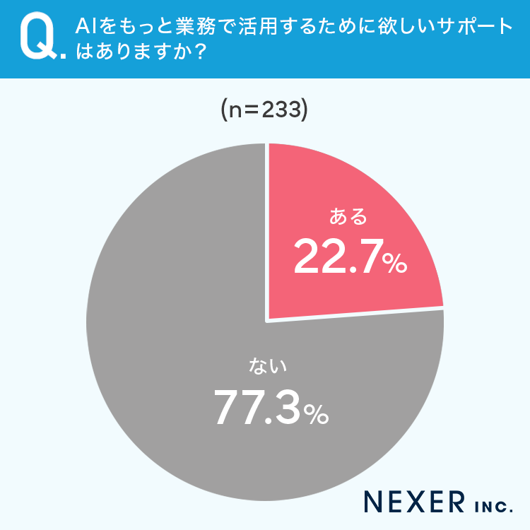 2割以上の方が、AIをもっと業務で活用するために欲しいサポートが「ある」と回答しています。