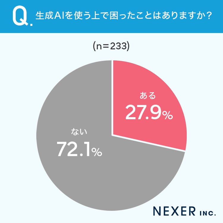 4人に1人以上が、生成AIを使う上で困ったことが「ある」と回答しています。