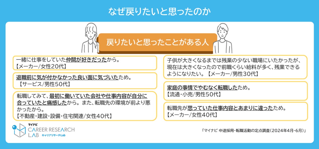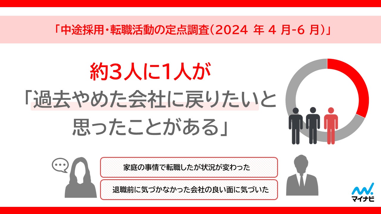約3人に1人は「過去やめた会社に戻りたいと思ったことがある」。理由は「ライフステージの変化」や「退職後に会社の良い面に気づいた」