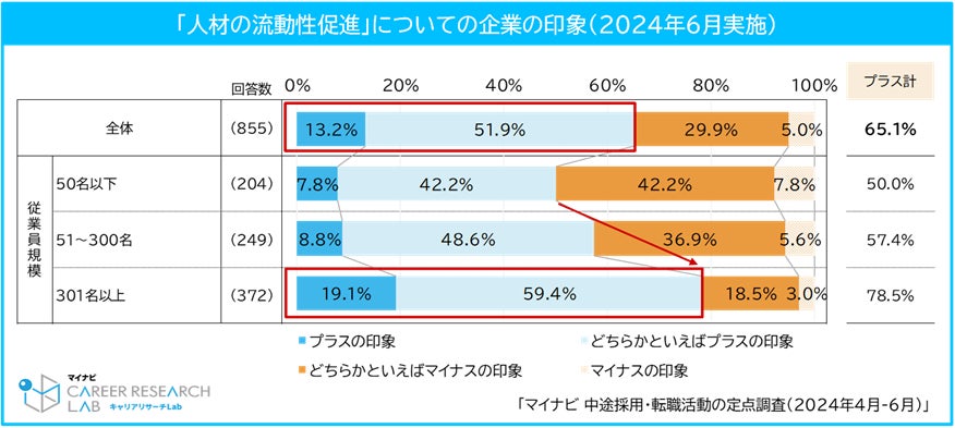 調査によると、採用担当者の6割以上が「人材の流動性促進」に対してプラスの印象を持っていることがわかりました。
